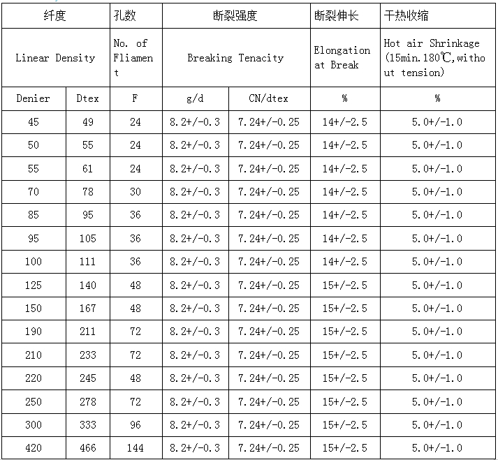 青島偉峰纖維有限公司滌綸長絲產(chǎn)品目錄、物性指標(biāo)